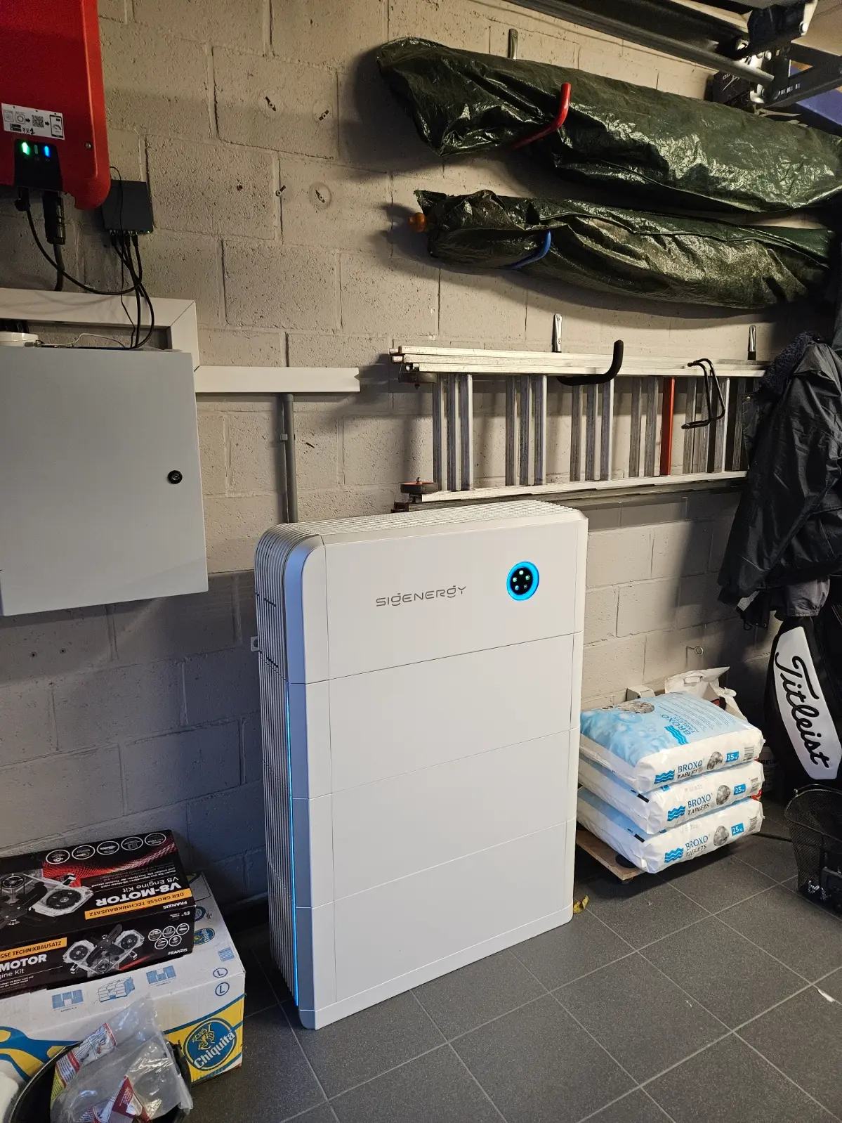 SigenStor monofase met 4.6kW controller + een batterij van 9.04kWh naast een bestaande omvormer geplaatst(retrofit).